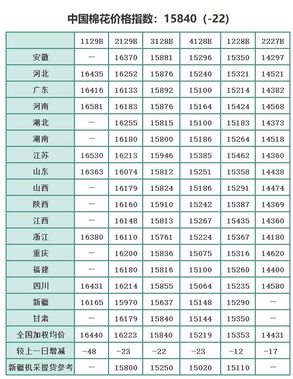 中国棉花价格指数(CC Index)及分省到厂价(9.6)